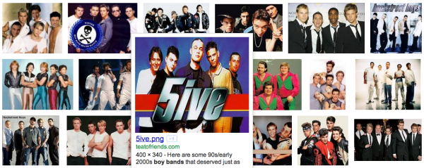 Below are the Google image search results for each of the four types of musical groups — choirs, acappella groups, boy bands, and pop stars — representing four points along the axis from collectivism to individualism.